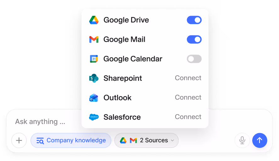 Search and work with internal data from over 50 integrations.